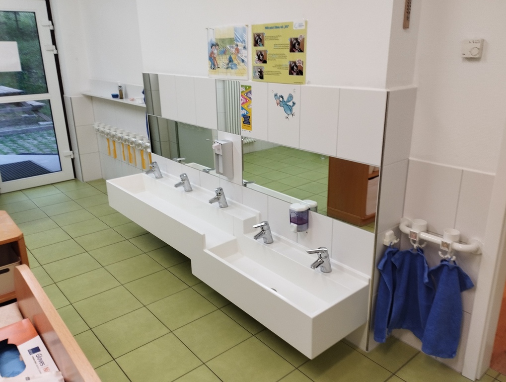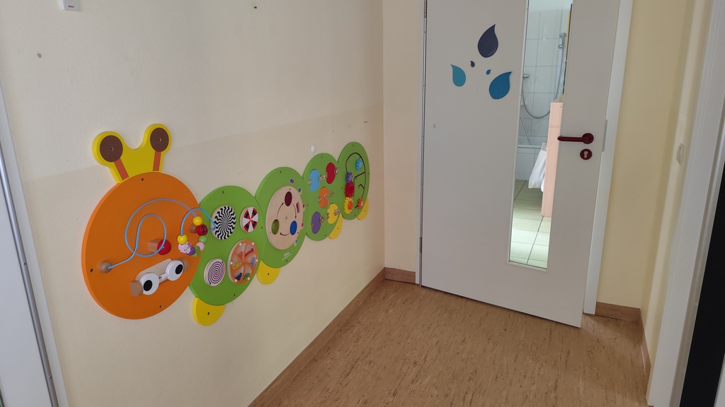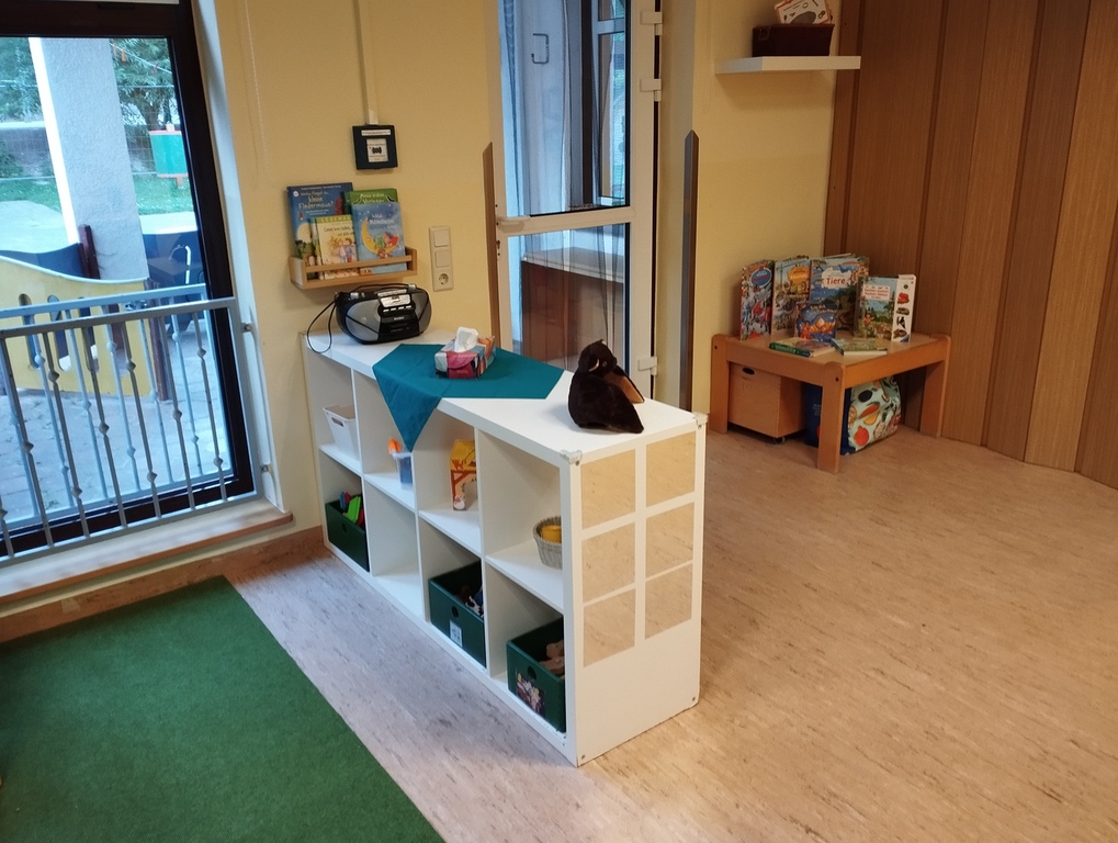 Hallo, wir sind die Fledermäuse und jetzt dem Spatzennest entflogen. Wir sind in den Kindergartenbereich umgezogen und teilen uns einen Flur und das Bad mit den Eichhörnchen.