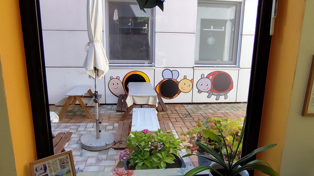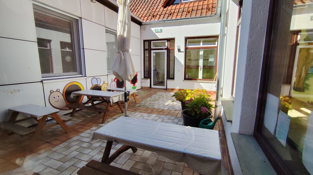 Bei schönem Wetter können wir unseren Innenhof nutzen