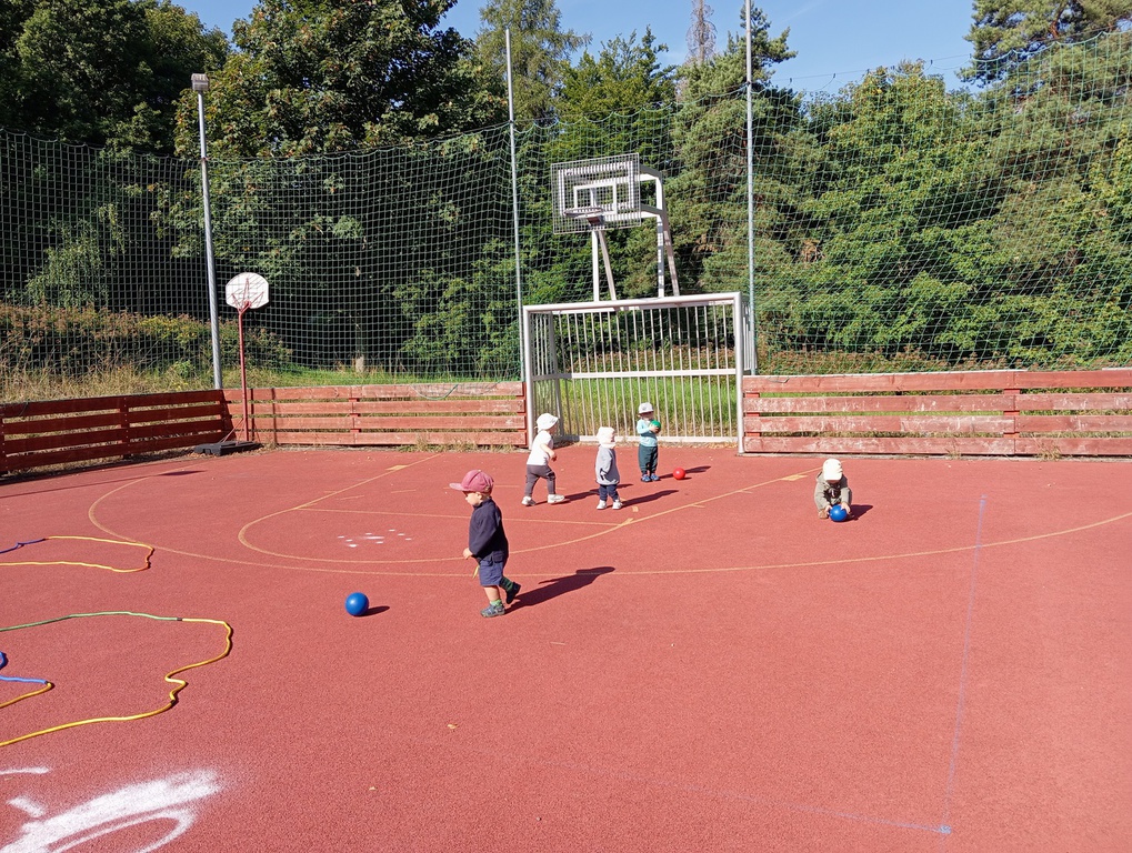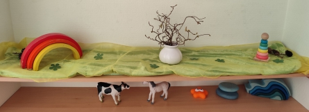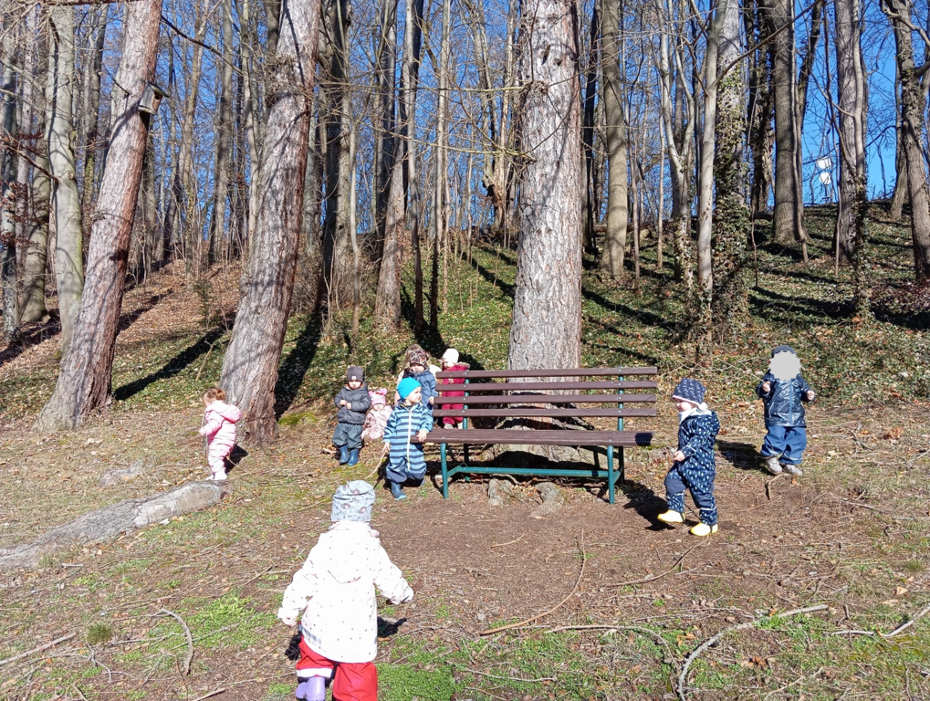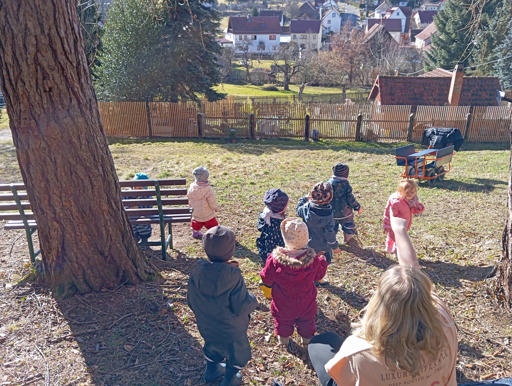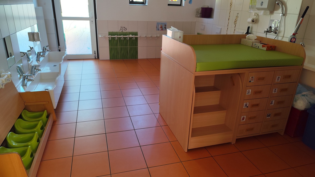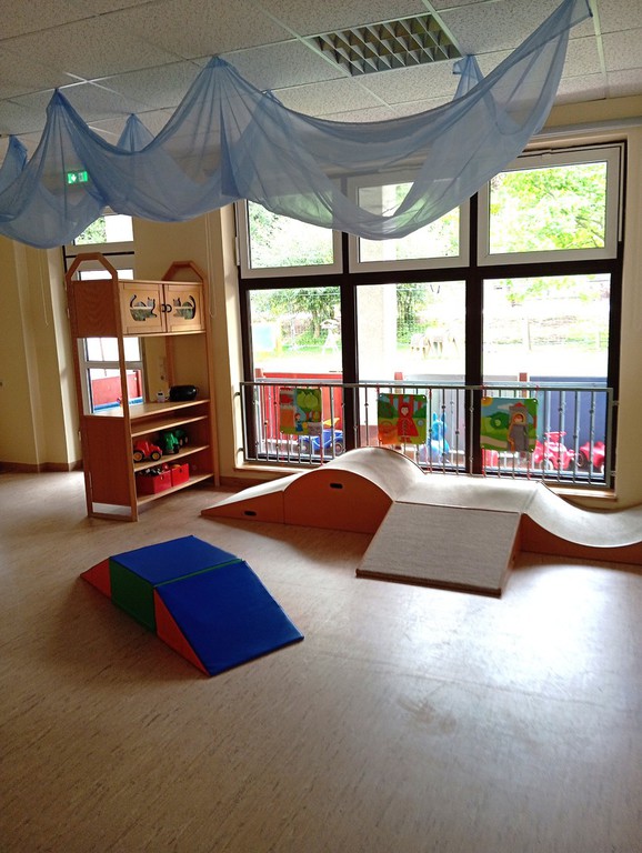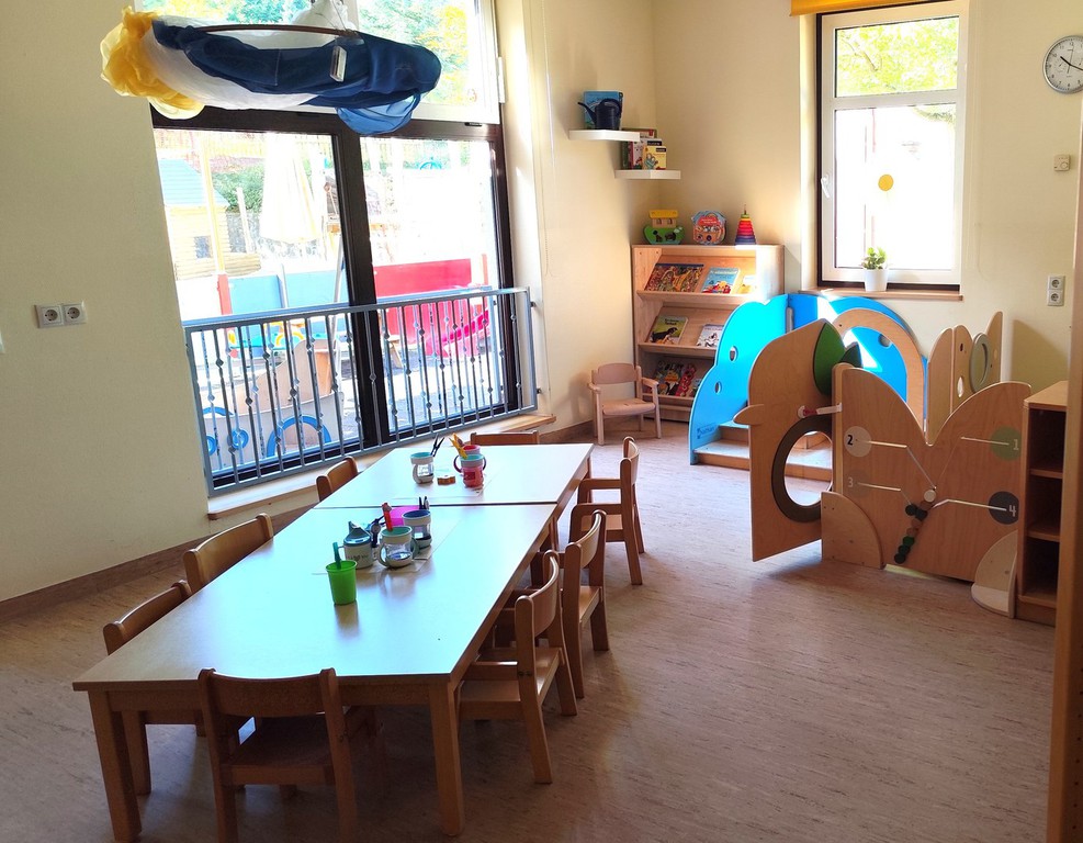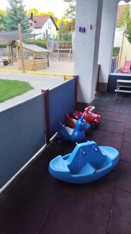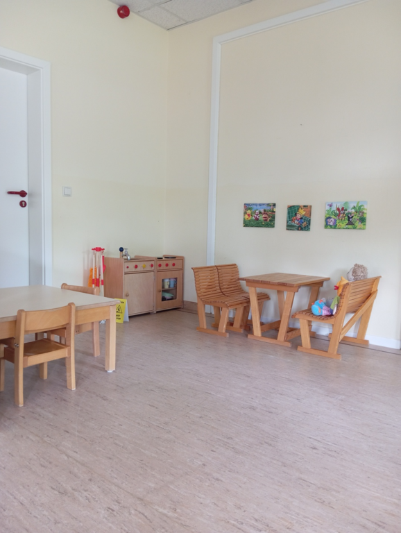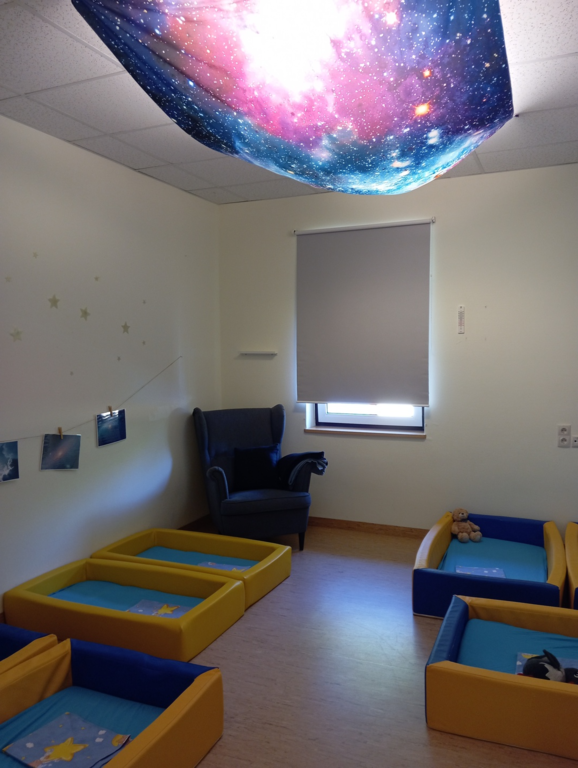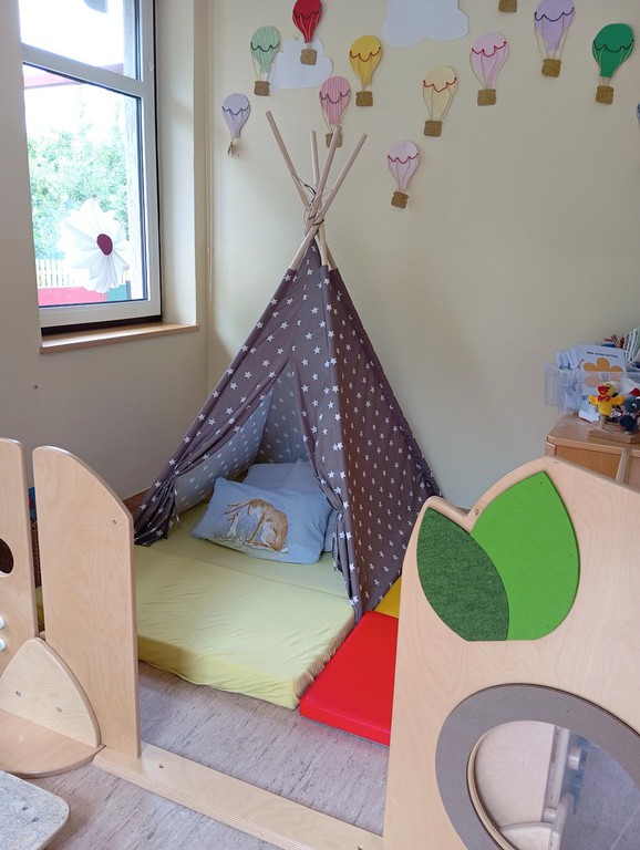 Seit August unterstützt Jasmin unsere Allerkleinsten. Wichtig ist im Moment, dass die Kinder, die neu zu uns kommen die neue Umgebung kennenlernen, sich gut einleben und den Tagesablauf festigen. Wir haben im Krippenbereich einen Spiel- und Bewegungsraum, einen Bereich zum Essen und einen neu gestalteten Schlafraum. Durch Lichteffekte, Klänge sowie ein Sternentuch finden wir angenehme Ruhe und einen gesunden Mittagsschlaf. In unserer Kinderküche haben wir die Möglichkeit Alltagsgegenstände zu entdecken. Die Bewegung an der frischen Luft ist durch unseren tollen Krippengarten gegeben und im Krippenwagen oder zu Fuß erkunden wir die Natur rund um den Kindergarten.