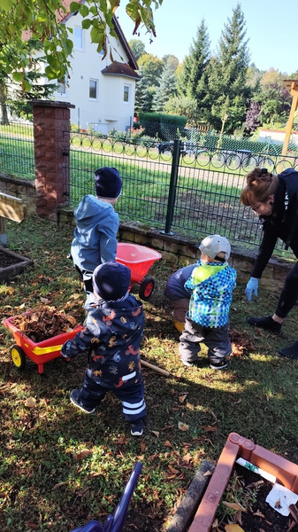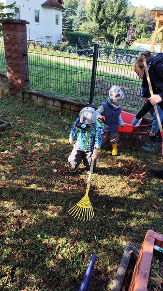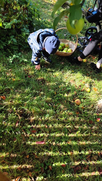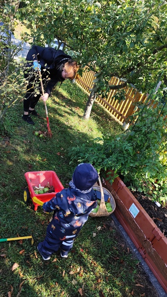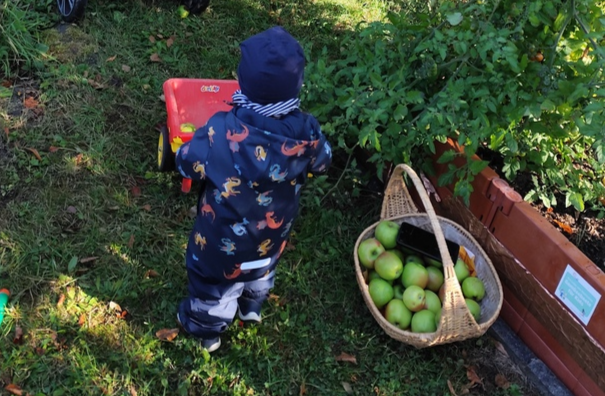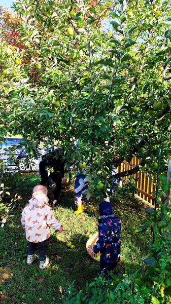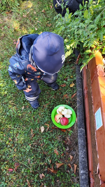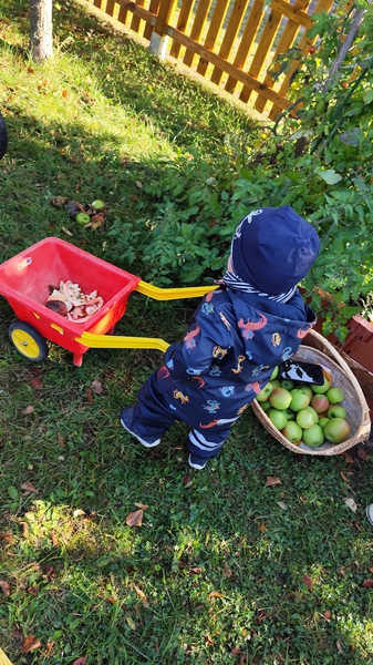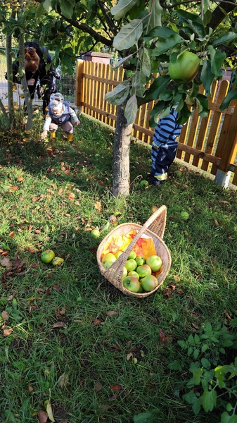 Auch wir Kleinsten beteiligten uns an der Apfelernte im eigenen Garten von der KiTa