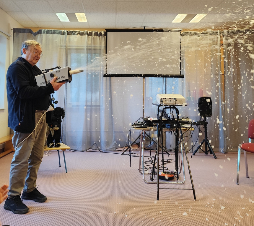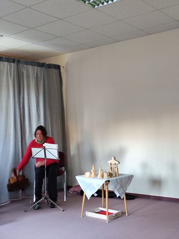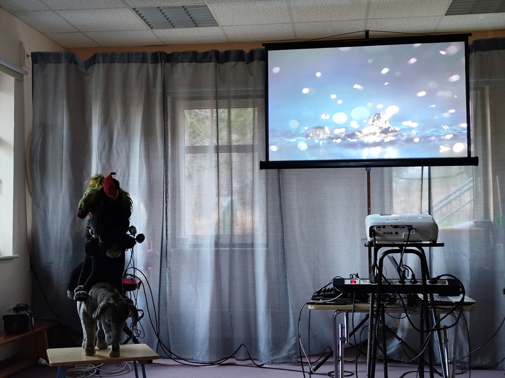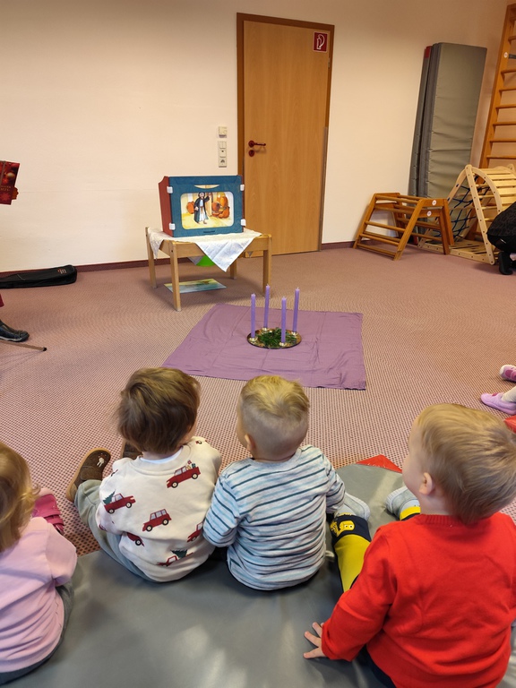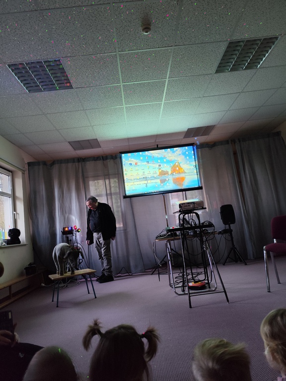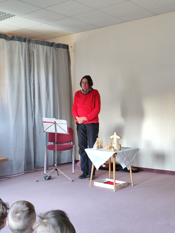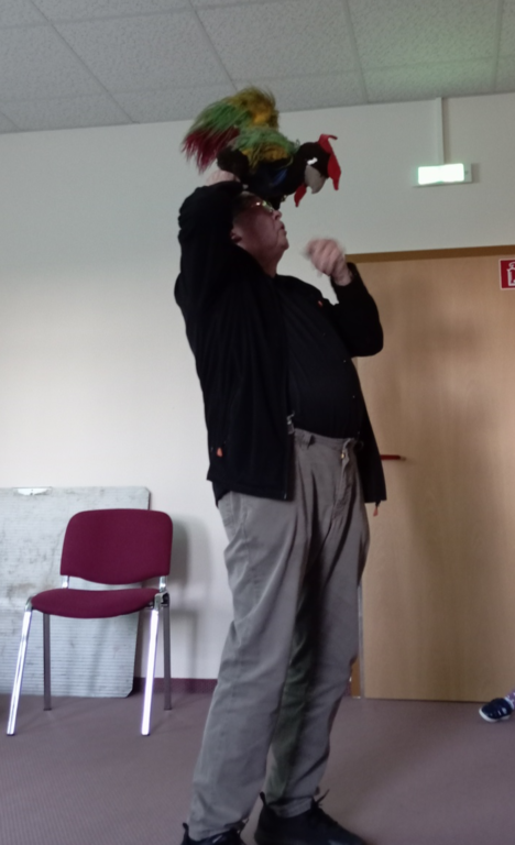Wilfried Meister kam auch in diesem Jahr aus Weimar zu uns, um die Geschichte von den Bremer Stadtmusikanten für die kleineren Kinder , Hänsel und Gretel für die größeren Kinder zu erzählen. Er begeisterte sogar die Kleinsten mit tollen Effekten,Requisiten und Geräuschen. Natürlich konnten die Kinder auch mitmachen, sich bewegen , tanzen und selber Geräusche machen. Für alle Kinder schneite es zum Schluß im Raum.