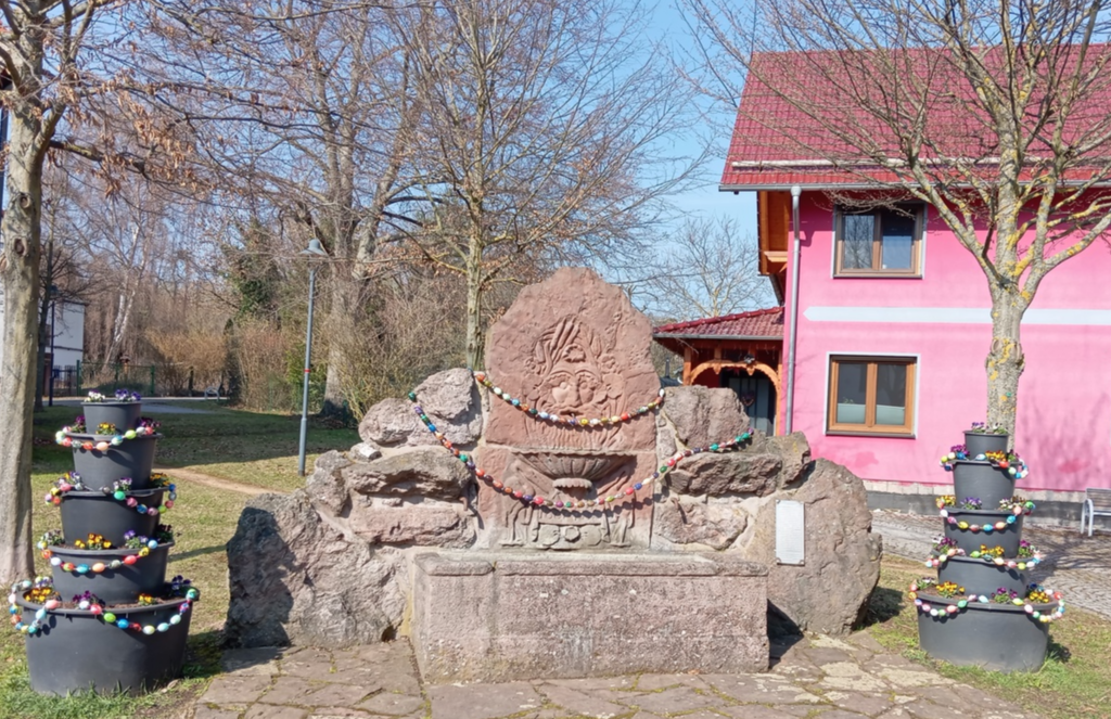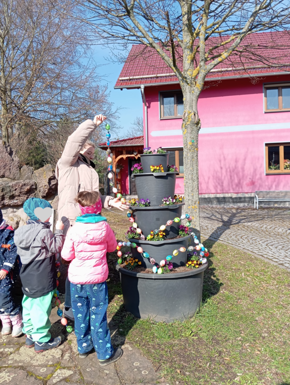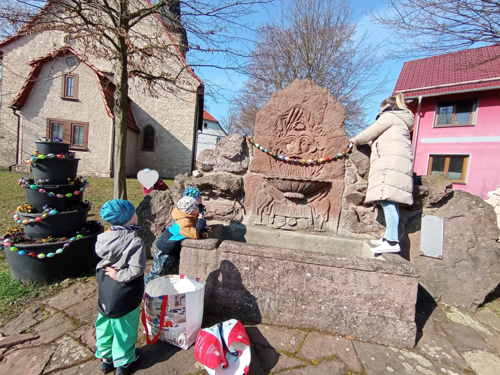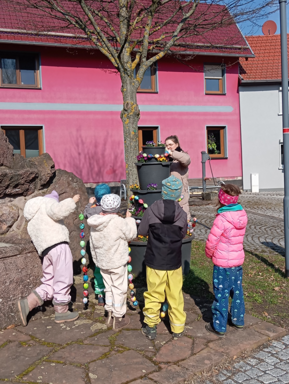 Wie jedes Jahr schmückt unsere Kita zu Ostern den Storchbrunnen in Ernstroda