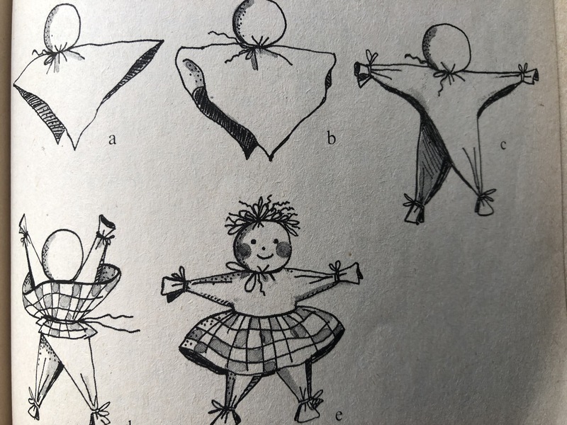 Benötigt wird dazu ein Stückchen Stoff, dass nicht größer als ein Herrentaschentuch sein soll. An alle vier Ecken des sauber umsäumten Stoffes näht man jeweils ein ca. 50cm langes Band.
