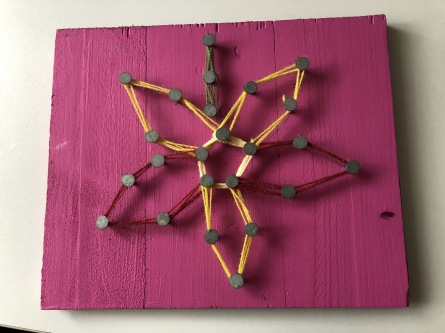 - Wickelt nun Wolle euerer Wahl um die eingeschlagenen Nägel.
