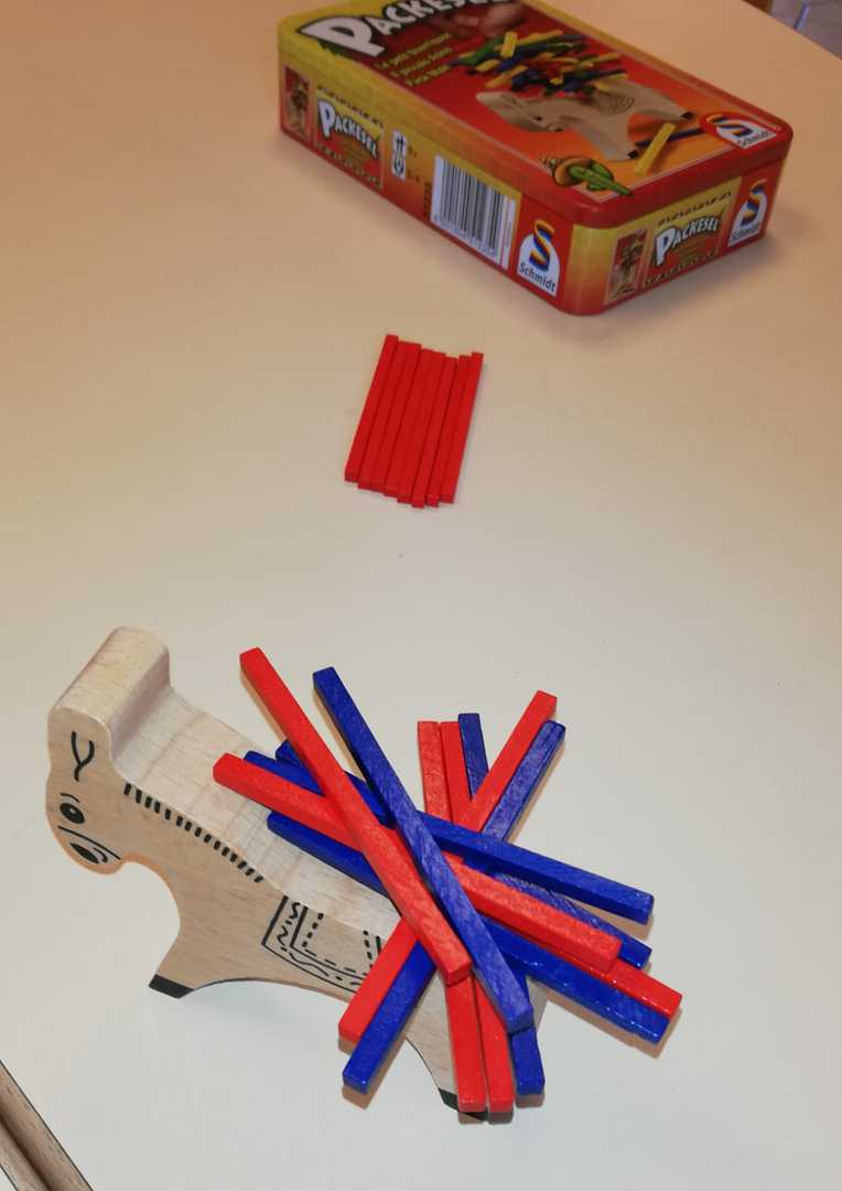 Jeder legt so viele Stäbchen weg, wie er gewürfelt hat. Das ist anfangs nicht schwer. Erst wenn die Zahl der noch übriggebliebenen Stäbchen erwürfelt werden muss, wird es interessant. Hat der Spieler z.B. nur noch 2 Stäbchen und würfelt eine Sechs, so muss er vier dazulegen. Der erste, der alle seine Stäbchen los ist, hat gewonnen.