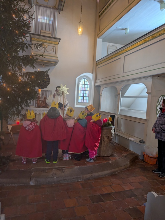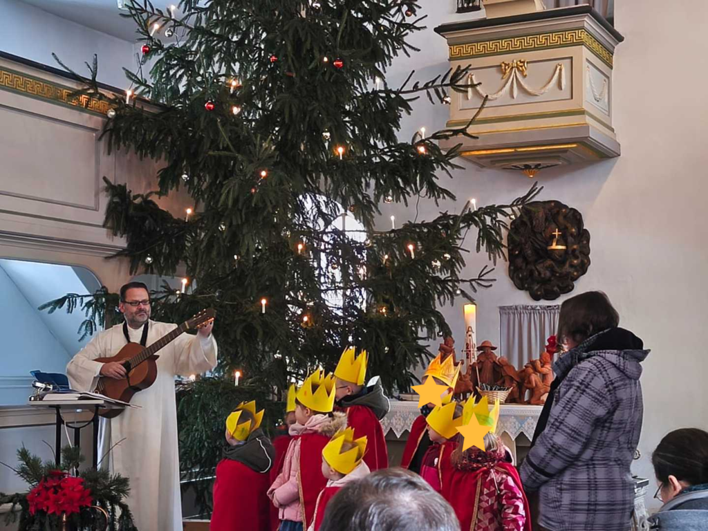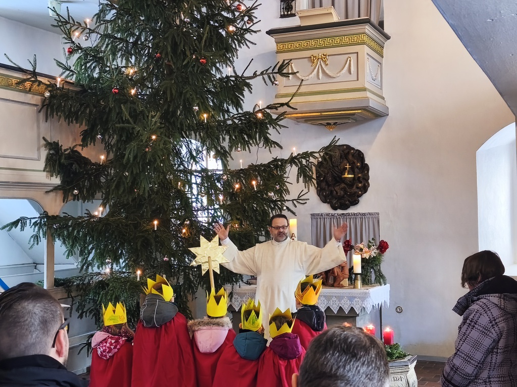 Am 04. Januar war in der Kirche in Ernstroda ein besonderes Leuchten zu spüren: Die Sternsinger der Kirchbergknirpse wurden im Gottesdienst feierlich ausgesendet. In festlichen Gewändern schlüpften die Kinder in die Rollen der Heiligen Drei Könige Caspar, Melchior und Balthasar, begleitet von einem Sternträger und weiteren Kindern.