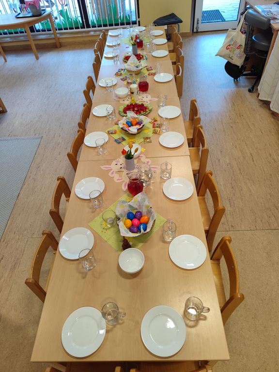 Mit einem gemeinsamen Frühstück an einer bunt geschmückten Tafel begannen wir den Tag.