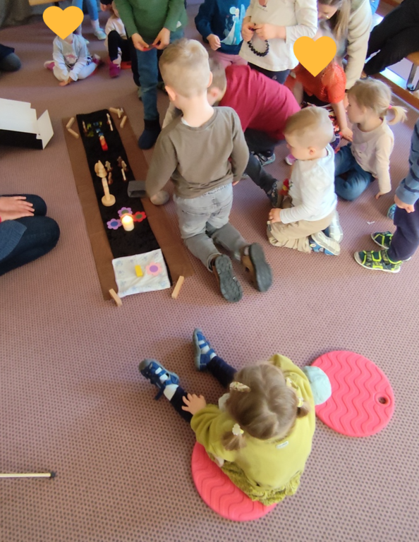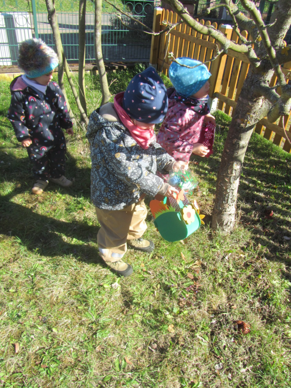 Die Osterfeier ist für alle im Kindergarten immer ein besonderes Fest. Wir beginnen den Tag mit einem reichhaltigen Frühstück, welches vom Kindergarten ausgerichtet wird. Gut gesättigt zelebrieren wir den Mittwoch nach Ostern mit einer Andacht, welche unsere Religionspädagogin Sylvia für uns vorbereitet hat. Die Kinder erfahren die Ostergeschichte und gestalten die Andacht mit. Danach hat natürlich auch der Osterhase für jedes Kind ein Nestchen auf dem Spielplatz versteckt.